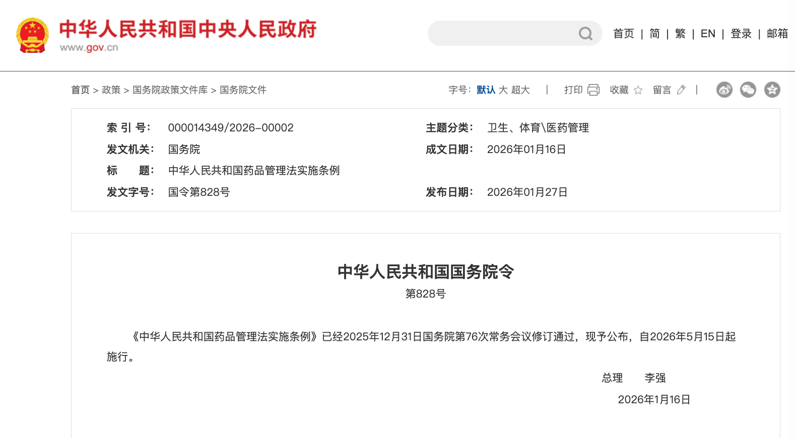 2026年1月16日,国务院总理李强签署第828号国务院令,公布修订后的《中华人民共和国药品管理法实施条例》(以下简称《条例》)将于2026年5月15日起正式施行。该《条例》为药品管理工作提出了更具针对性的政策依据,其中药品标签、说明书的无障碍及适老化要求成为重点内容之一。